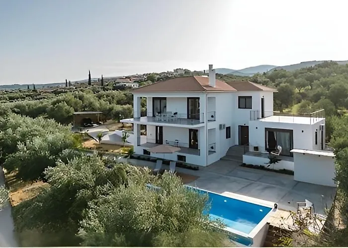 Situada a 2.8 km da Praia de Peroulia, Beautiful House With Pool & View Vila fornece acesso a inúmeras atrações turísticas na área. A propriedade inclui o parque de estacionamento e pátio com vista para a montanha.